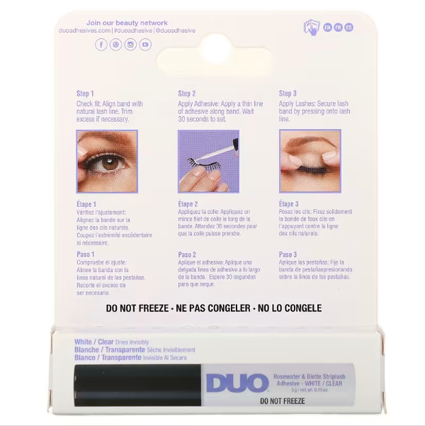 Paso 3: Aplica las pestañas: Asegurate de que la tira se adhiera presionando sobre la línea de las pestañas.